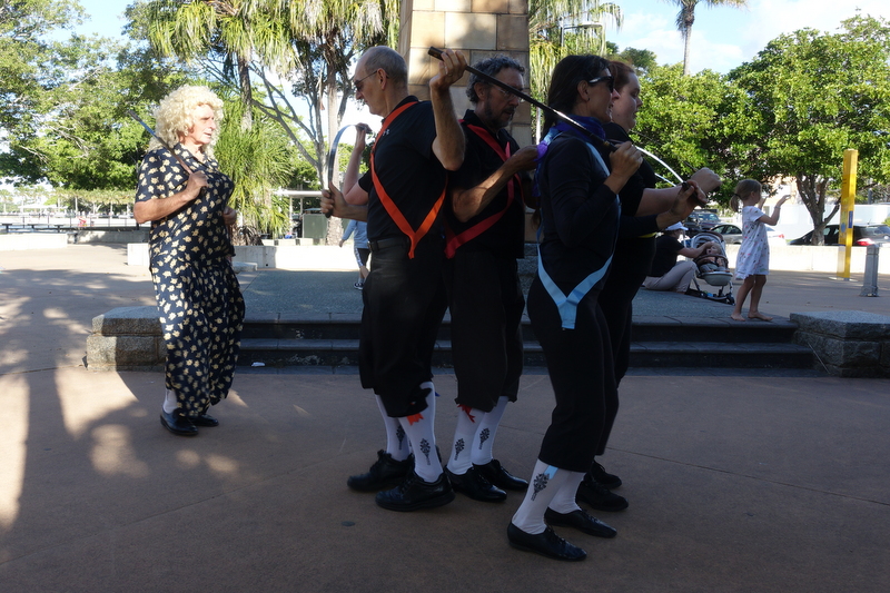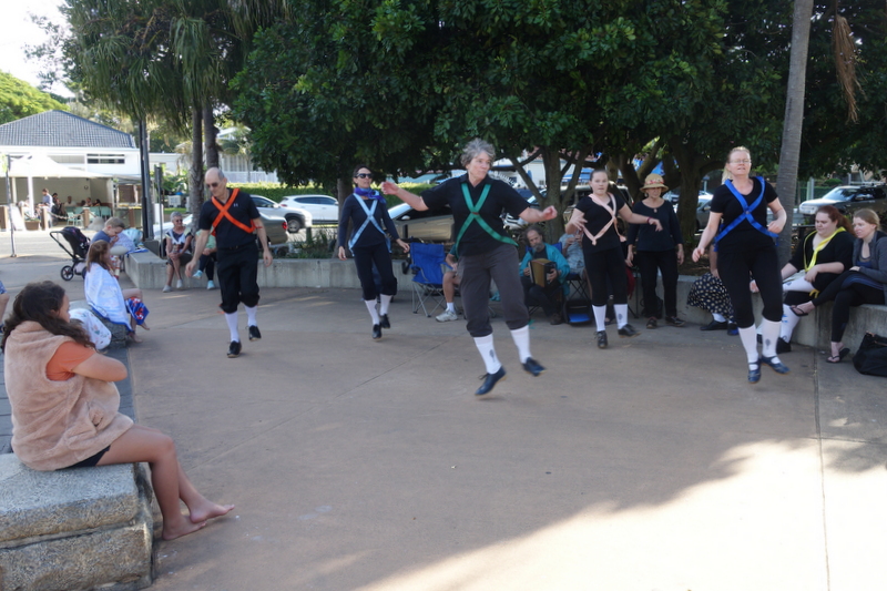 BRASS perform Longsword, Rapper, Flamborough and English Clogging to an admiring audience on the Wynnum Foreshore.